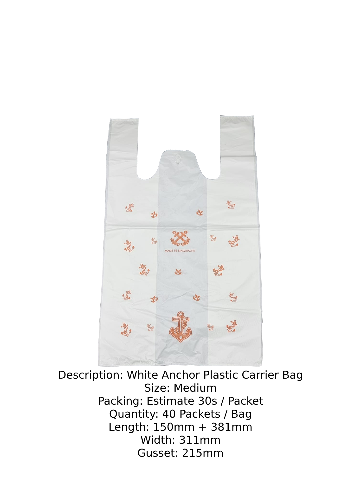 WHITE Anchor Carrier Bag - MEDIUM (船锚白色塑料袋-中)